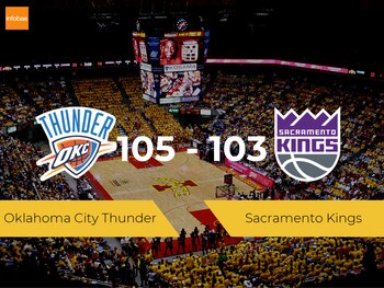 Oklahoma City Thunder ganó como local a Sacramento Kings por 105-103 en una nueva jornada de la NBA. Anteriormente, los jugadores de Oklahoma City Thunder ganaron fuera de casa contra New Orleans Pelicans por 100-108, por lo que tras el encuentro completaron una racha de cinco victorias seguidas, mientras que los de Sacramento Kings perdieron a domicilio con San Antonio Spurs por 136-117, por lo que tras el partido sumaron un total de cinco derrotas seguidas. Con este resultado, Oklahoma City Thunder acumula cinco victorias en 11 partidos disputados en la competición, mientras que Sacramento Kings se queda con cinco victorias en 13 partidos jugados.