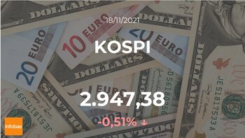 Mal día para el KOSPI, que cerró la jornada del jueves 18 de noviembre con leves descensos del 0,51%, hasta los 2.947,38 puntos. El KOSPI llegó a la cifra máxima de 2.964,48 puntos y un volumen mínimo de 2.937,53 puntos. El rango de cotización para el KOSPI entre su punto más alto y el más bajo (máximo-mínimo) durante este día se situó en el 0,91%.