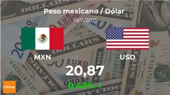 Al comienzo de la jornada el dólar estadounidense se cotiza a las 12:00 horas a 20,87 pesos mexicanos, lo que supuso una subida del 0,43% frente a la cotización de la jornada previa, cuando cotizó a 20,78 pesos mexicanos.