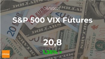 Positiva sesión para el S&P 500 VIX Futures, que cerró la sesión del viernes 19 de noviembre con leves ascensos del 1,36%, hasta los 20,80 puntos. El S&P 500 VIX Futures marcó la cifra máxima de 21,10 puntos y la cifra mínima de 20,23 puntos. El rango de cotización para el S&P 500 VIX Futures entre su punto más alto y el más bajo (máximo-mínimo) durante este día se situó en el 4,12%.