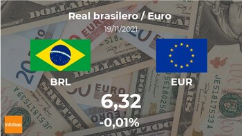 Tras la apertura de la sesión bursátil el euro se negocia a las 09:00 horas a 6,32 reales brasileños, un ligero -0,01% de cambio con la jornada precedente.