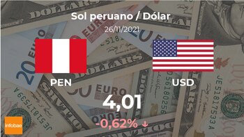 El dólar estadounidense cotizó a las 21:00 horas a 4,01 soles, lo que supuso una disminución del 0,62% comparado con el dato de la jornada anterior, cuando marcó 4,04 soles.