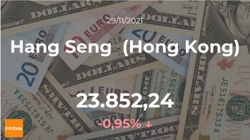 Día adverso para el Hang Seng (Hong Kong), que terminó la jornada del lunes 29 de noviembre con bajadas del 0,95%, hasta los 23.852,24 puntos. El Hang Seng (Hong Kong) marcó la cifra máxima de 24.134,32 puntos y la cifra mínima de 23.774,31 puntos. El rango de cotización para el Hang Seng (Hong Kong) entre su punto más alto y el más bajo (máximo-mínimo) durante este día se situó en el 1,49%.