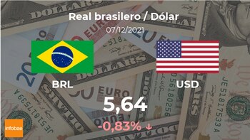 En la última sesión el dólar estadounidense se negoció a las 19:00 horas a 5,64 reales brasileños, lo que implicó un descenso del 0,83% si se compara con la cotización del día anterior, cuando marcó 5,69 reales brasileños.