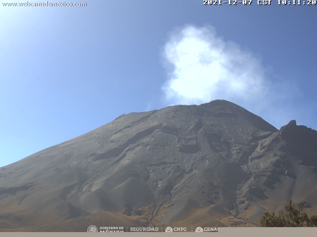 Desde la mañana se pudo observar al volcán Popocatépetl con emisión de vapor de agua y gas con dirección suroeste, según el monitoreo del Centro Nacional de Prevención de Desastres (Cenapred).