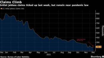 Las solicitudes iniciales ascendieron a 206.000 en la semana que terminó el 11 de diciembre, 18.000 más que en el período anterior, según datos Departamento del Trabajo publicados el jueves. La mediana de las estimaciones de los economistas encuestados por Bloomberg fue de un aumento a 200.000 solicitudes.