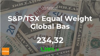 Buena sesión para el S&P/TSX Equal Weight Global Bas, que terminó la jornada del miércoles 22 de diciembre con subidas del 1,28%, hasta los 234,32 puntos. El S&P/TSX Equal Weight Global Bas anotó la cifra máxima de 235,03 puntos y un mínimo de 230,53 puntos. El rango de cotización para el S&P/TSX Equal Weight Global Bas entre su punto más alto y el más bajo (máximo-mínimo) durante este día se situó en el 1,91%.