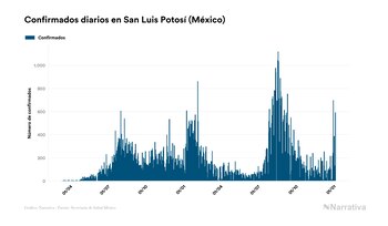 Según los últimos datos oficiales, en San Luis Potosí ha crecido la cifra de personas contagiadas por coronavirus un 0,54 % tras confirmarse 590 nuevos casos en el día de hoy, lo que eleva el número total de positivos en la región a 109.656 personas.