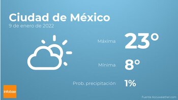 Para el día de hoy en Ciudad de México tendremos escasa nubosidad. En relación a las temperaturas, estas variarán entre los 23 grados de máxima y 8 de mínima. Junto a todo esto, se esperan vientos del norte de carácter débil con rachas de hasta 32 km/h.