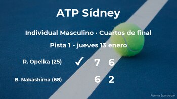 El jugador estadounidense Reilly Opelka, número 25 de la ATP y cabeza de serie número 4, ganó por 7(7)-6(4) y 6-2 en una hora y veintiun minutos al tenista estadounidense Brandon Nakashima, número 68 de la ATP, en los cuartos de final del torneo ATP 250 de Sídney. Con este resultado, podremos seguir viendo al ganador del partido en la siguiente fase del torneo ATP 250 de Sídney, las semifinales.