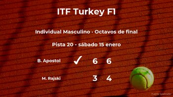 El jugador rumano Bogdan Ionut Apostol ganó en los octavos de final del torneo de Antalya por 6-3 y 6-4 en una hora y quince minutos al polaco Maciej Rajski. Tras este resultado, seguiremos de cerca la trayectoria del jugador en los cuartos de final de la competición.