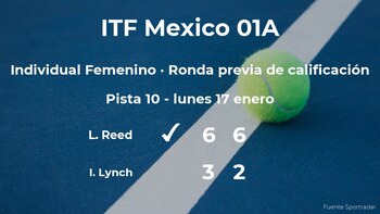 La jugadora estadounidense Lexington Reed ganó por 6-3 y 6-2 a Isabella Lynch, tenista británica en la ronda previa de calificación del torneo de Cancún. Con esta victoria, Reed consigue sumar nuevos puntos a su ranking para entrar en el torneo de Cancún.
