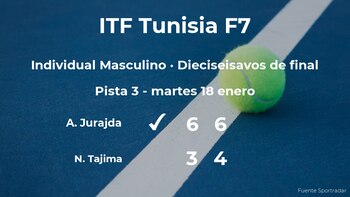 Adam Jurajda, checo ganó por 6-3 y 6-4 en una hora y dieciséis minutos al japonés Naoki Tajima y cabeza de serie número 8, en los dieciseisavos de final del torneo de Monastir. Con este resultado, seguiremos viendo al ganador del partido en la siguiente fase del torneo de Monastir, los octavos de final.