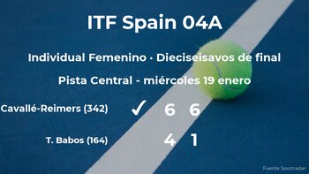 Ivonne Cavallé-Reimers, española, número 342 de la WTA, venció en una hora y treinta y nueve minutos por 6-4 y 6-1 a la jugadora húngara Timea Babos, número 164 de la WTA y cabeza de serie número 2, en los dieciseisavos de final del torneo de Manacor. Con este resultado, seguiremos de cerca la trayectoria de la jugadora en los octavos de final de la competición.
