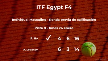 Ray Ho, cumplió las previsiones al vencer en una hora y cuarenta y cuatro minutos por 4-6, 6-3 y 16-14 a Aleksandr Lobanov, tenista ruso en la ronda previa de calificación del torneo de El Cairo. Con este resultado, seguiremos viendo al jugador en la siguiente ronda del torneo de El Cairo.