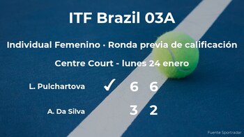 La tenista checa Laetitia Pulchartova cumplió las previsiones al ganar por 6-3 y 6-2 a Aline Midori Da Silva, tenista brasileña en la ronda previa de calificación del torneo de Florianópolis. Con esta victoria, la jugadora logra sumar nuevos puntos a su ranking para llegar a participar en el torneo de Florianópolis.