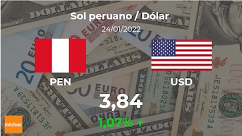 El dólar estadounidense se pagó a las 21:21 horas a 3,84 soles, de modo que implicó un ascenso del 1,07% con respecto a los 3,80 soles de la jornada previa.