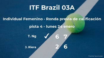 La jugadora estadounidense Taylor Ng ganó por 6-2 y 7-6 a Julia Riera, tenista argentina en la ronda previa de calificación del torneo de Florianópolis. Con este resultado, la ganadora añade nuevos puntos a su ranking para entrar en el torneo de Florianópolis.