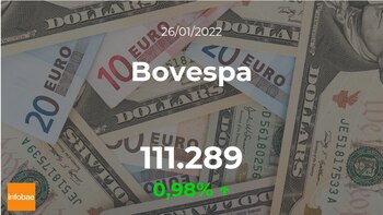 Positiva jornada para el Bovespa, que acabó el día del miércoles 26 de enero con incrementos del 0,98%, hasta los 111.289 puntos. El Bovespa llegó a un volumen máximo de 112.695 puntos y un volumen mínimo de 110.204 puntos. El rango de cotización para el Bovespa entre su punto más alto y el más bajo (máximo-mínimo) durante este día se situó en el 2,21%.
