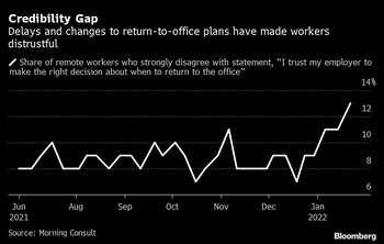 (Bloomberg) -- Las empresas están pidiendo a los trabajadores que regresen a la oficina, nuevamente. Pero después de tantos altibajos, los empleados están perdiendo la fe en que sus gerentes puedan hacerlo bien.