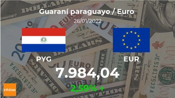 Al comienzo de la jornada el euro se cotiza a las 16:00 horas a 7.984,04 guaraníes, de manera que implicó un ascenso del 2,59% si se compara con los 7.782,30 guaraníes de la jornada anterior.
