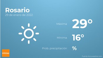 En las primeras horas de mañana en Rosario se prevén cielos despejados. Según pasen las horas se esperan cielos sin nubes. Con respecto a las temperaturas, oscilarán entre una máxima de 29 y una mínima de 16 grados centígrados. En general, vientos del noreste sin apenas intensidad con rachas de hasta 24 kilómetros por hora.