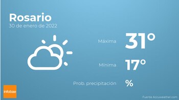 El pronóstico del clima para mañana a primera hora en Rosario se prevén pocas nubes. Por la tarde se esperan nubes y claros con probabilidad de tormentas y lluvia. Con respecto a las temperaturas, variarán entre una máxima de 31 y una mínima de 17 grados. Además, se esperan vientos del norte de poca intensidad con valores de hasta 24 kilómetros por hora.