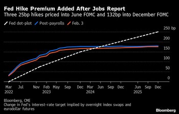(Bloomberg) -- Los operadores en el mercado de swaps de Estados Unidos aumentaron las apuestas a que la Reserva Federal elevará las tasas de interés en 50 puntos básicos en marzo, y el fuerte informe de empleo de enero avivó la especulación de que el banco central está listo para comenzar a actuar agresivamente para enfriar la economía.