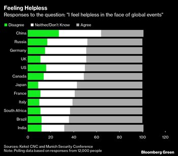 (Bloomberg) -- El cambio climático es considerado una amenaza mayor que la guerra por la mayoría de las personas que viven en algunas de las principales economías del mundo, según nuevos datos presentados a diplomáticos y autoridades militares reunidos el viernes en Alemania en una cumbre clave sobre seguridad.