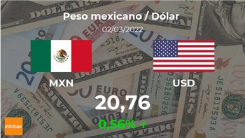El dólar estadounidense se negocia a la apertura a 20,76 pesos mexicanos, lo que supuso un incremento del 0,56% frente a los 20,64 pesos mexicanos del día previo.