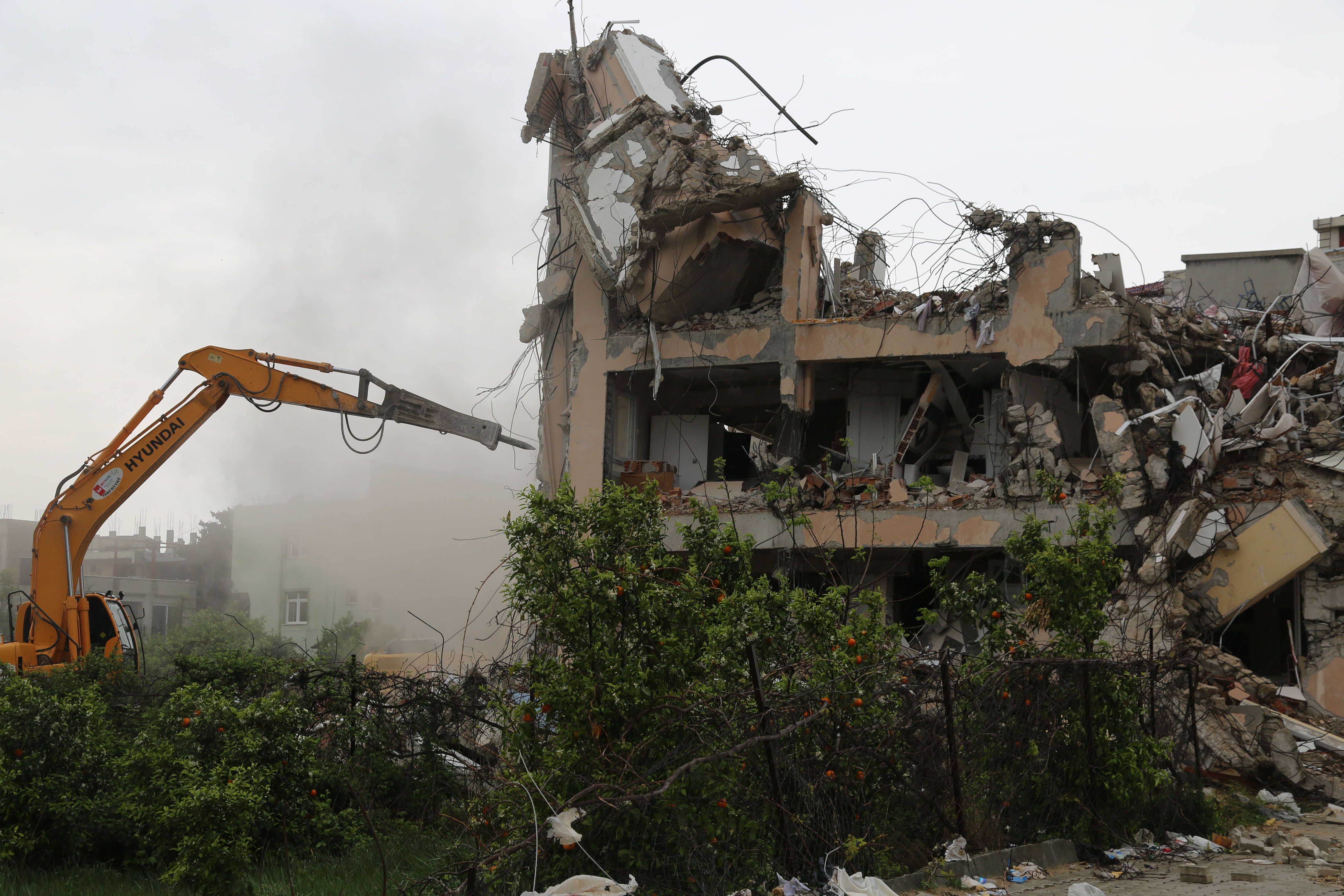 Pie de foto: Máquina empieza la demolición de un edificio en Samandag