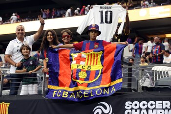 Redacción deportes, 29 jul (EFE).- El Barcelona se impone al descanso al Real Madrid (1-0) en el amistoso que se está disputando en el AT&T Stadium de Dallas (Estados Unidos) gracias al gol del francés Ousmane Dembelé en el minuto 15 de una primera mitad en la que el brasileño Vinícius Junior mandó un penalti al travesaño en el 20.