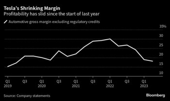 Su director ejecutivo, Elon Musk, dijo que Tesla tendrá que seguir bajando los precios de sus vehículos eléctricos si las tasas de interés continúan al alza. Meses de rebajas han afectado el margen bruto de la empresa, que en el segundo trimestre cayó a un mínimo de cuatro años.
