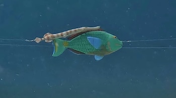 Un experimento en arrecifes de coral ha proporcionado la primera evidencia de que los depredadores usan otros animales para camuflarse y acercarse a sus presas sin ser detectados. El estudio prueba que el pez trompeta, Aulostomus maculatus, puede ocultarse nadando detrás de otro pez mientras caza, y reduce la probabilidad de ser detectado por su presa. En este comportamiento de "sombra", el pez trompeta largo y delgado utiliza una especie de pez no amenazante, como el pez loro, como camuflaje para acercarse a su cena. Este es el único ejemplo conocido de un animal no humano que utiliza a otro como forma de ocultamiento. La investigación involucró horas de buceo en el Mar Caribe, tirando de peces modelo pintados a mano a lo largo de un cable. "Cuando un pez trompeta nada cerca de otra especie de pez, se oculta por completo de su presa o se ve pero no se reconoce como un depredador porque la forma es diferente", dijo en un comunicado el Dr. Sam Matchette, investigador del Departamento de Zoología de la Universidad de Cambridge y primer autor del estudio. El pez damisela, Stegastes partitus, forma colonias en el lecho marino y es una comida común para el pez trompeta. Trabajando entre los arrecifes de coral frente a la isla caribeña holandesa de Curaçao, los investigadores instalaron un sistema submarino para sacar modelos impresos en 3D de peces trompeta en líneas de nailon a través de colonias de damiselas y filmaron sus respuestas. Cuando el modelo de pez trompeta pasó solo, el pez damisela nadó para inspeccionar y rápidamente huyó para refugiarse en respuesta a la amenaza depredadora. Cuando un modelo de un pez loro herbívoro, Sparisoma viride, pasó solo, la damisela inspeccionó y respondió mucho menos. Cuando se adjuntó un modelo de pez trompeta al costado de un modelo de pez loro, para replicar el comportamiento de sombra del pez trompeta real, el pez damisela respondió tal como lo había hecho con el modelo de pez loro solo: no había detectado la amenaza. Matchette dijo: "Me sorprendió que el damisela tuviera una respuesta tan profundamente diferente a los diferentes peces; fue genial ver que esto sucediera en tiempo real". El estudio, en el que participan colaboradores de la Universidad de Bristol, se publica en la revista Current Biology.
