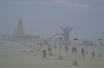 Decenas de miles de personas que acudían al festival 'Burning Man', celebrado en el noroeste del estado estadounidense de Nevada, han quedado atrapados en el desierto como consecuencia de las fuertes lluvias que han caído durante la noche y que han provocado inundaciones en la zona, ha informado CNN. En torno a las 10.45 horas (hora local) del sábado, los organizadores del evento comunicaron que las puertas y el aeropuerto de entrada y salida de Black Rock City --la metrópolis temporal que aparece cada año en el desierto-- permanecerían cerrados y dieron a los asistentes la orden de dosificar agua, comida y combustible y de buscar cobijo. "La entrada y la salida están detenidas. No se permite conducir hasta que la superficie de la playa se seque, a excepción de los vehículos de emergencia", explicaron los responsables en la red social X, antes conocida como Twitter. "Se anima a los participantes a conservar alimentos, agua y combustible, y a refugiarse en un espacio cálido y seguro", añadían. Más de 73.000 personas han acudido al festival, según el Reno Gazette Journal, aunque se desconoce cuántas de ellas se han visto afectadas por las restricciones debidas a las inclemencias meteorológicas. Lejos de mejorar sus predicciones, el Servicio Meteorológico Nacional en Reno, Nevada, ha advertido que el mal tiempo "no ha terminado" y ha avanzado que se espera que las lluvias y tormentas eléctricas continúen durante todo el domingo. No obstante, la lluvia de la zona cesará probablemente el domingo por la noche, según la agencia. Las alertas por inundaciones continúan vigentes en el noreste de Nevada. El tiempo en el festival de este año contrasta fuertemente con el del año pasado, cuando las temperaturas fueron de tres dígitos, alcanzando los 105 grados Fahrenheit (40,5 grados Celsius), recoge CNN. Este año, el festival ha estado marcado por distintos incidentes desde su inicio. El 27 de agosto, día de la inauguración, activistas climáticos y anticapitalistas bloquearon una carretera que conduce a Burning Man, dando lugar a atascos que se extendieron a lo largo de varios kilómetros. El bloqueo pretendía, según un comunicado de la coalición de grupos activistas que organizó la protesta, Seven Circles, poner de relieve "la incapacidad del capitalismo para hacer frente al colapso climático y ecológico".