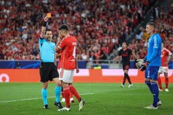 Árbitro: Halil Umut Meler (TUR). Mostró la tarjeta amarilla a Trubin, Rafa, Otamendi y la roja a António Silva por parte del Benfica, y la amarilla a Gourna-Douath, Baidoo, Simic y Koita.