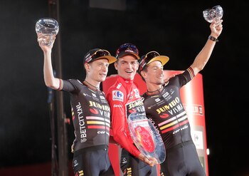 Además, los tres han completado el podio de esta edición de la Vuelta, algo que solo había conseguido en 1966 el KAS, con los españoles Francisco Gabica, Eusebio Vélez y Carlos Echeverría.