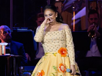 Isabel Pantoja actuó este sábado en su ciudad natal (Sevilla), en el Estadio de La Cartuja ante más de 3.000 espectadores. La cantante celebra 50 años en la música y quiso hacerlo con un "reencuentro muy especial con todos sus fans". Para ello, ha organizado una "exclusiva gira 50 aniversario" que arrancó este sábado 23 de septiembre en su ciudad y que, posteriormente, le llevará a las grandes capitales del país. Con lo que no contaba la 'Reina de la copla' es que entre su público se encontraría con otra diva de la música y no precisamente española: Shirley Bassey, con la que ya estuvo en el Baile de la Rosa hace tan solo unos meses. "Es una de las más especiales que yo he grabado en mi vida" empezaba diciendo la artista, anunciando que venía un tema muy especial, pero sobre todo importante: Para mí fue un sueño poder cantarla, con todos mis respetos, a mi estilo y a mi forma y todo eso fue gracias a la admiración que tengo a su intérprete original, una estrella que da luz, una artista, una gran cantante y una maravillosa persona". Esa persona, Shirley Bassey, se encontraba entre el público: "Que me dio la sorpresa de que venía a verme aquí a Sevilla, a mi tierra y no sé cómo agradecérselo. Esta noche nada más y nada menos la señora, Shirley Bassey, no sé por dónde está, pero por Dios, esta gran ovación para ella, es mundial, el cañón hacia la señora" expresaba emocionada. Muy emocionada, la tonadillera quiso dedicarle unas palabras a su compañera antes de cantar un tema de la famosa artista: "¡El cañón para la señora!". Isabel pedía que la encontrasen entre la multitud y cuando esto sucede, Bassey, acompañada por varias personas, camina hacía el escenario y sin llegar a subir, pero desde abajo estira el brazo para que Pantoja se agache y le coja la mano, mientras le dice: "¡Qué linda, ay, dios mío, gracias, i love you, i love you, gracias por venir". Además, la tonadillera recordó cuando coincidieron en el Baile de la Rosa: "Cuánto y qué agradecida estoy a todos los compañeros que vienen con ella, ay, pasamos una velada tan bonita en Mónaco, cómo me iba a imaginar que iba a venir a verme a Sevilla, gracias, señora, maestra".