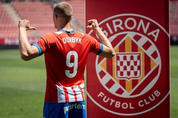 Dovbyk recaló en Montilivi este verano, convertido en el fichaje más caro de la historia del club: el Girona pagó al Dnipro-1 ucranio una cifra de entre siete y ocho millones de euros por el 70% de sus derechos. El Midtjylland conserva el 30% restante. Encajaba a la perfección con el perfil que se buscaba para suplir la marcha de Taty Castellanos, hoy futbolista de la Lazio, y que fuera de Ucrania como Tsygankov allanó el camino. La nacionalidad no era un requisito, sino que fue "cierta casualidad, entre comillas", dicen.