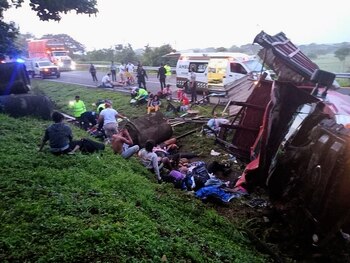 Tapachula (México), 1 oct (EFE).- Al menos diez migrantes fallecieron y 15 resultaron heridos en un accidente de tráfico en el municipio mexicano de Pijijiapan, a 150 kilómetros de la ciudad fronteriza de Tapachula, en el sureño estado de Chiapas.