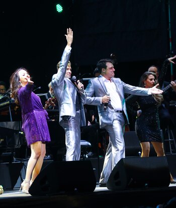 Acompañados de la Orquesta Sinfónica de la Universidad de Guanajuato, pusieron el toque "hollywoodiense" para entretener al público, mayoritariamente joven.