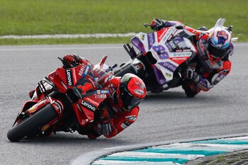 La estrategia de Bagnaia resultó más que efectiva y si bien el sábado, en la carrera "sprint", Jorge Martín pudo recuperar dos puntos en la tabla provisional del campeonato, el domingo acabó cediendo tres, lo que le hace marcharse con un punto más de diferencia de los que llegó a Malasia.