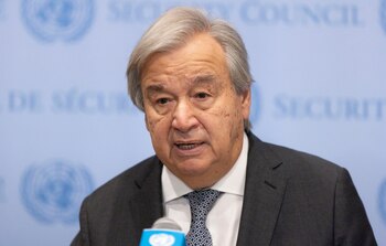 "Esta guerra está teniendo un número de víctimas civiles pasmoso e inaceptable, incluidas mujeres y niños, cada día. Esto debe acabar. Reitero mi llamamiento a un alto el fuego humanitario inmediato", dijo el secretario general.