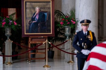 El ataúd de O'Connor fue envuelto en la bandera estadounidense y colocado en el Gran Salón de la sede del máximo tribunal un día antes de que se celebre su funeral en la Catedral Nacional, en Washington.