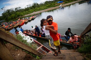 Los migrantes llegan primero a Bajo Chiquito tras cruzar la selva, donde las autoridades registran sus datos y duermen una noche. Al día siguiente bajan en canoas -pagadas por ellos mismos- por el río Tuquesa hasta uno de los dos albergues existentes en Darién.