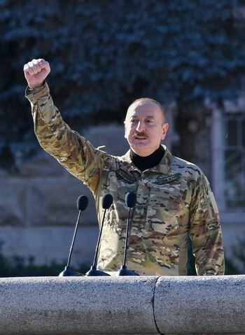 Reelegido el pasado día 7 para un quinto mandato consecutivo como jefe de Estado y Gobierno con el 92 % de los votos -aupado por la victoria en la guerra por el control de Nagorno Karabaj y la recuperación de territorios ocupados por los armenios desde hace 30 años- Aliyev llegó a la capital turca en la noche del domingo.