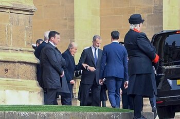 En una fría mañana en Windsor, los reyes Felipe y Letizia llegaron poco antes de las 11.00 GMT al llamado Porche de Galilea de la capilla de San Jorge, donde fueron recibidos por el decano de los Canónigos de Windsor, Christopher Cocksworth, quien ofició la ceremonia.