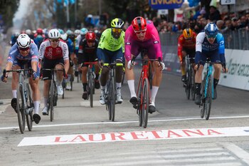 Roma, 7 mar (EFE).- El italiano Jonatan Milan (Lidl-Trek) se impuso al esprint, con una impresionante cabalgada en los metros finales a golpe de riñón, en la cuarta etapa de la Tirreno Adriático para colocarse líder de la general, arrebatando así, por 4 segundos, la 'Maglia Azzurra' al español Juan Ayuso (UAE).