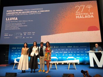 El director mexicano Rodrigo García Sáiz ha presentado este viernes en el 27 Festival de Málaga su ópera prima, 'Lluvia', que compite en la sección oficial del certamen. Se trata de un drama coral ambientado en una gigantesca y lluviosa Ciudad de México en el que los descubrimientos vitales de los distintos personajes se van entrelazando. La trama sigue seis historias distintas de personas solitarias que enfrentan un momento imprevisto, un acontecimiento extraño, luminoso o absurdo que les revela quiénes son. Después de esos insólitos momentos, vuelven a sumergirse en la confusión de los días. El realizador de la cinta, Rodrigo García Sáiz, ha participado en una rueda de prensa tras la exhibición de su obra en el cine Albéniz, junto con las actrices Morganna Love y Cecilia Suárez; además de la productora Paola Cortés. "Es una película coral, hecha con mucho corazón, donde queríamos retratar la condición humana", ha afirmado García Sáiz, que ha señalado que, aunque Ciudad de México es "otro personaje", se trata de un relato "universal". Su interés estaba en "retratar y dar voz a personas cotidianas". La lluvia que da título al filme, según ha explicado, sirve como "metáfora e hilo conductor" entre las distintas historias; además de "amplificar los sentimientos de cada uno de estos personajes que transitan en la película". "Son personas solitarias en una ciudad gigante", ha subrayado. "No son historias conclusivas ni tienen un arco dramático convencional", ha apuntado el cineasta. Para protagonizarlas, usó una combinación de actores experimentados con intérpretes noveles, con el objetivo de mostrar "un país muy diverso" que "muy pocas veces se enseña". "Fue el viaje de mi vida", ha resumido Rodrigo García Sáiz sobre la película. La actriz Morganna Love ha expresado su entusiasmo por la profundidad de los protagonistas de la cinta: "Lo maravilloso de esta película es que los personajes son tan humanos, tan reales, tan oscuros y luminosos al mismo tiempo", ha calificado. En el Día Internacional de la Mujer, la intérprete Cecilia Suárez ha compartido que la cuestión de género sigue estando muy presente en el sector audiovisual de su país. "Es complejo y muy cuesta arriba, hay que pasar muchas barreras. Quienes están filmando son guerreras absolutas, contra viento y marea", ha sostenido. "Es un esfuerzo muy grande por llegar a filmar, ser madres y mezclar toda esta profesión con la vida personal", ha coincidido la productora Paola Cortés, para la cual 'Lluvia' también ha sido una de sus primeras películas.