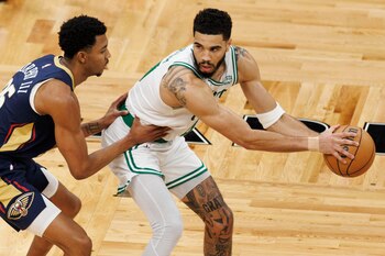 El triunfo número 50 de la temporada para estos Celtics imparables en el Este llegó con la firma de Jayson Tatum (26 puntos y 8 asistencias) y Jaylen Brown (27 puntos y 6 rebotes) acompañados por Sam Hauser con 22 puntos saliendo del banquillo.